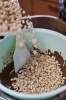 手作りのポン菓子と溶かしたチョコでおやつ作り