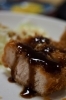とんかつの写真を撮っていると、あるお客様に「紹介するならこの辛味噌ソースかつ丼も紹介してよ。とっても美味いからさ。あと食べないと味も分からないでしょ?一切れ食べてよ」と言われました。